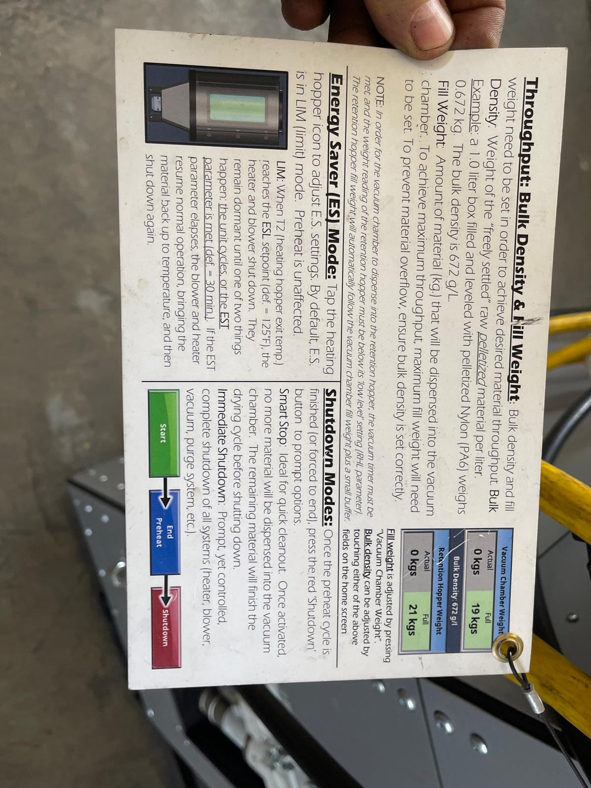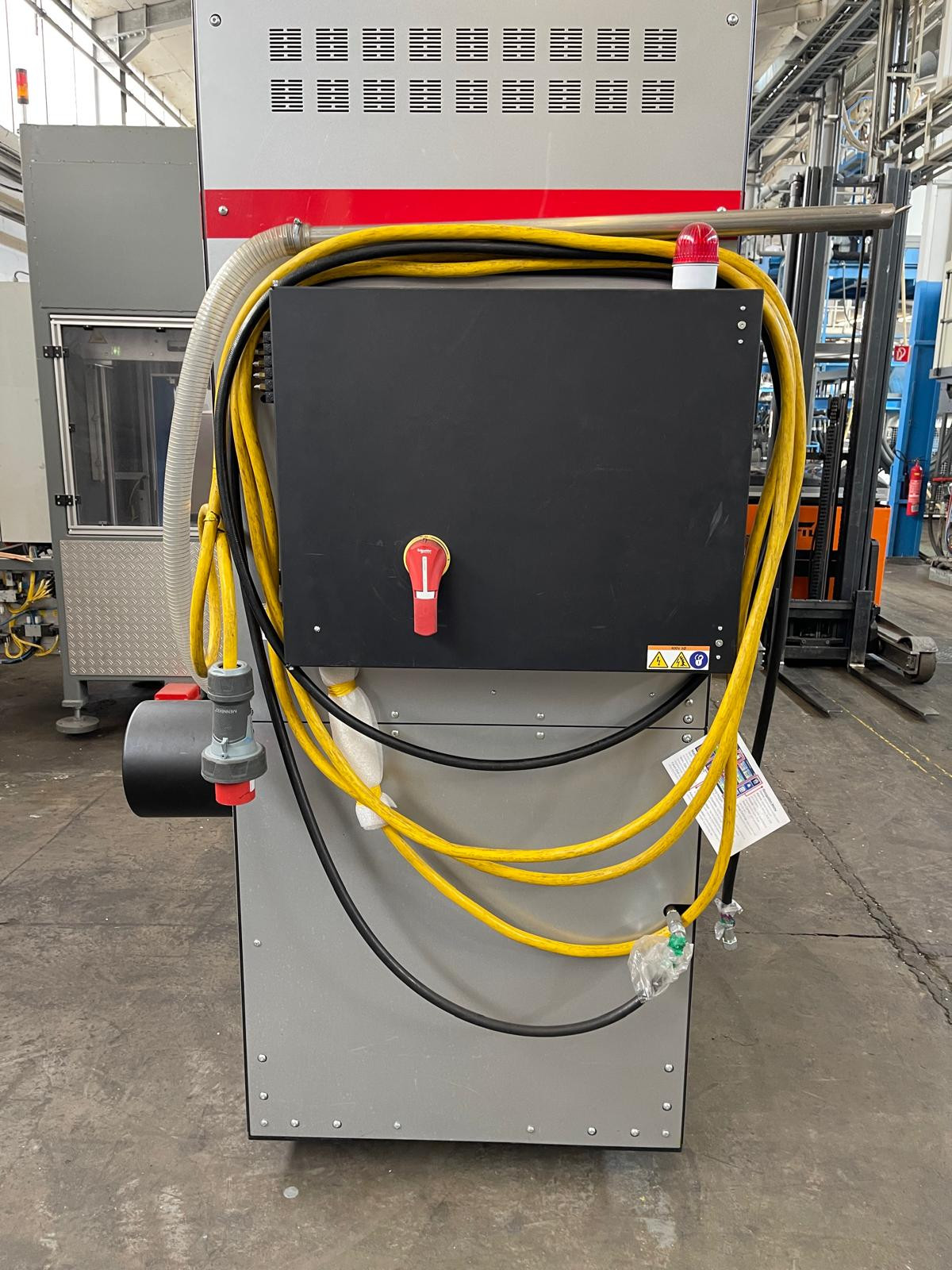 Trockentemperaturen von 70 bis 180°C. Materialablass über Absaugbox oder in freiem Fall direktin die Produktionsmaschine